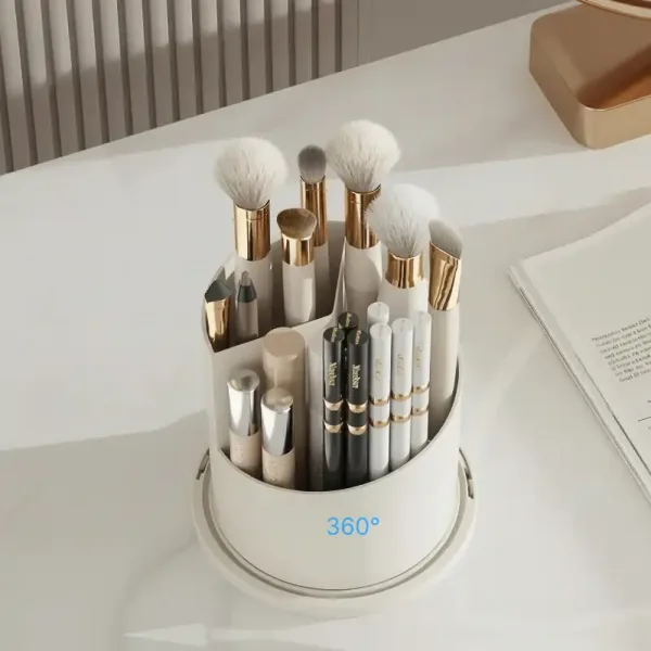 The smooth spinning base lets you grab what you need fast. No more rummaging or knocking over other items to find the right brush.