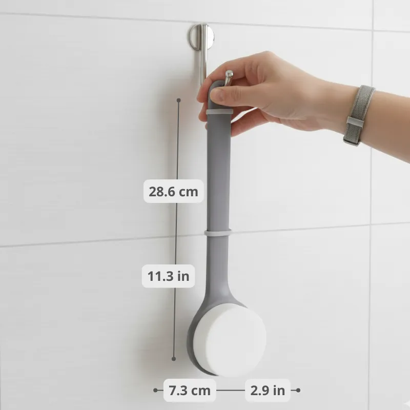 The handle isn’t slippery like my old brush. I can easily reach those tricky spots in the middle of my back.
