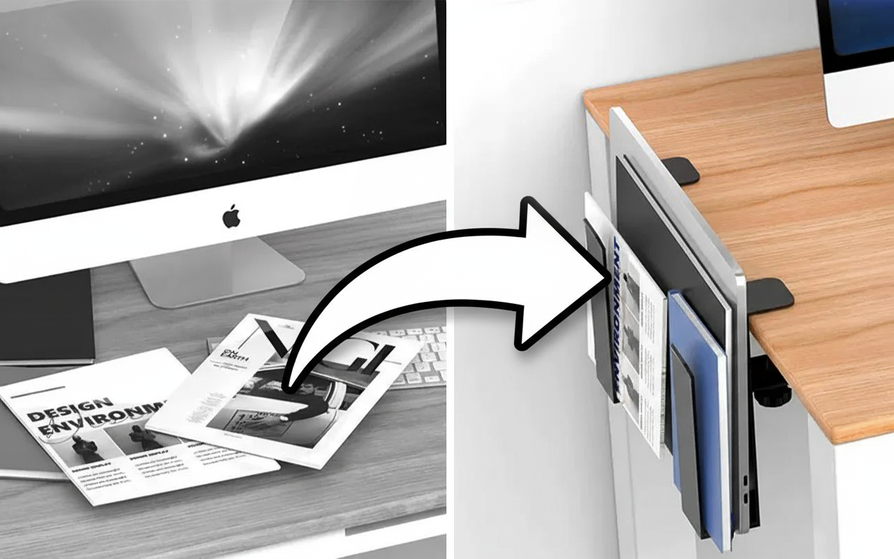 Reduce clutter fast using a smart holder beside your desk. Enjoy more room for working, typing or writing without distractions.