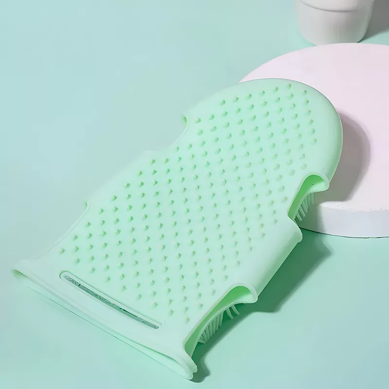 This silicone glove is tough on grime yet super gentle on my arms. I use it every day and my skin feels soft after rinsing.