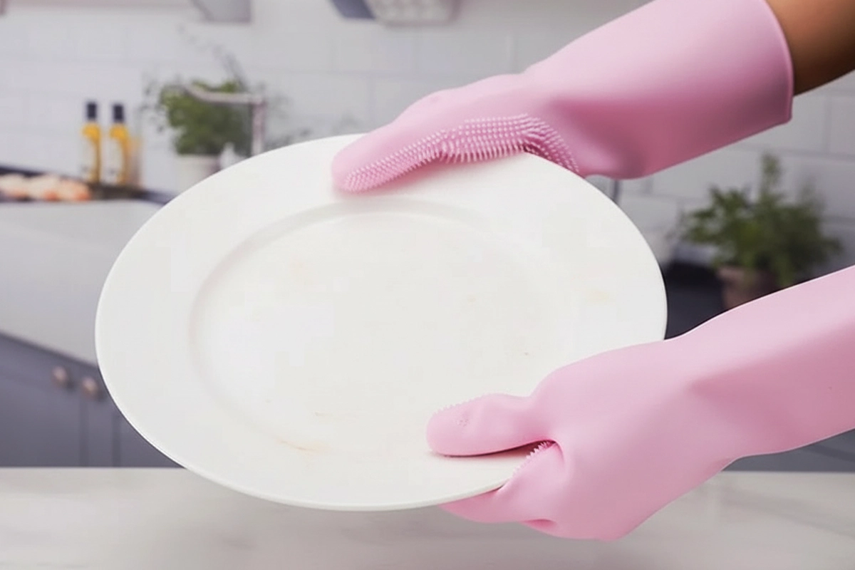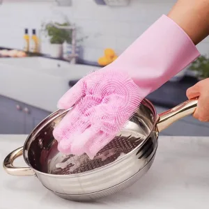 These scrubber gloves eliminate the need for separate brushes or sponges, saving you time and effort. They remove food residue, soap scum, and grime in seconds.