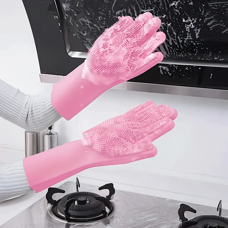 These scrubber gloves eliminate the need for separate brushes or sponges, saving you time and effort. They remove food residue, soap scum, and grime in seconds.
