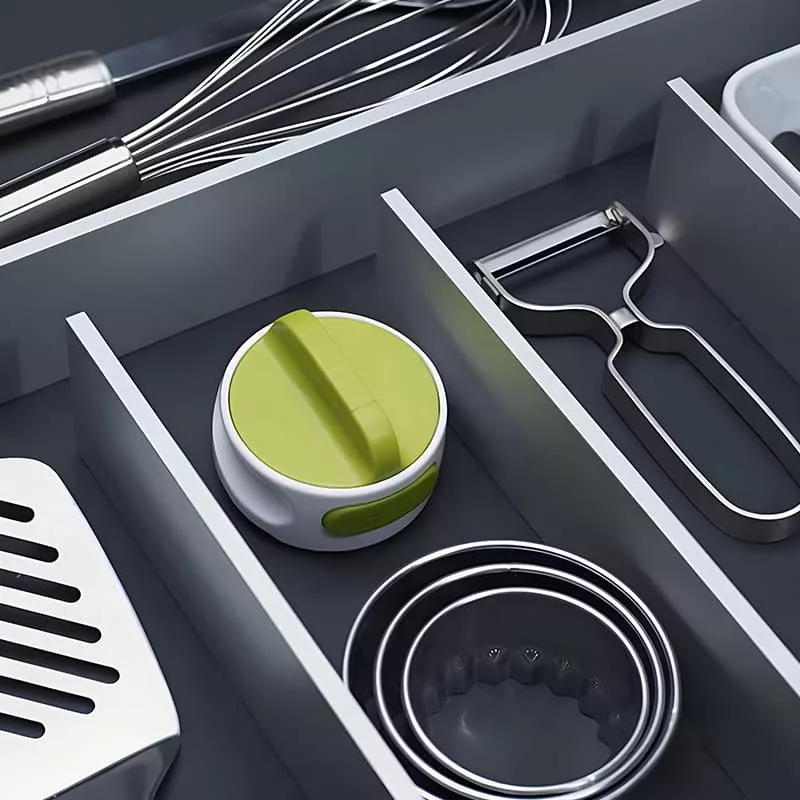 Keep worktops tidy by storing them almost anywhere. Its compact form leaves plenty of room for other essentials.