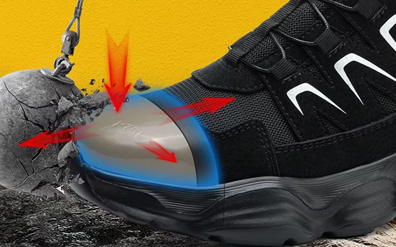 Steel reinforcement guards toes from falling tools or debris. Stab-resistant sole blocks sharp objects from reaching your feet.