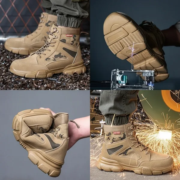 Reinforced steel guards against sharp drops or crushing impacts. Strong sole resists punctures from nails or debris with ease.
