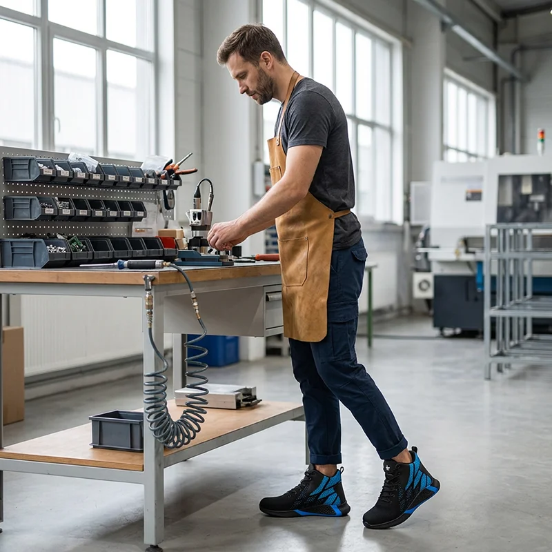 I spend hours on the assembly line and needed something kinder on my joints. These sneakers cushion each step, the steel toe gives peace of mind, and they don’t trap sweat.