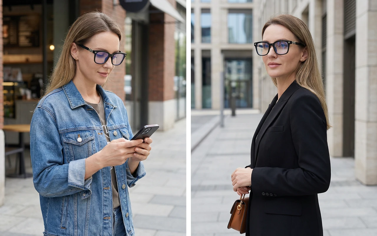 My headaches from staring at screens got way better with these glasses. The clear lenses are great and they match every outfit I wear.