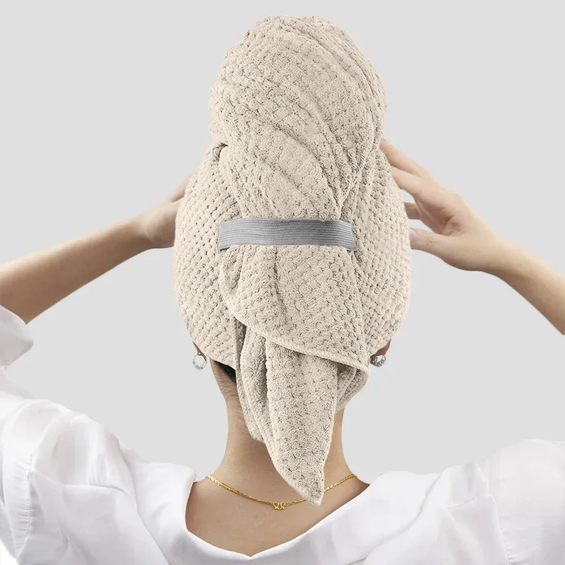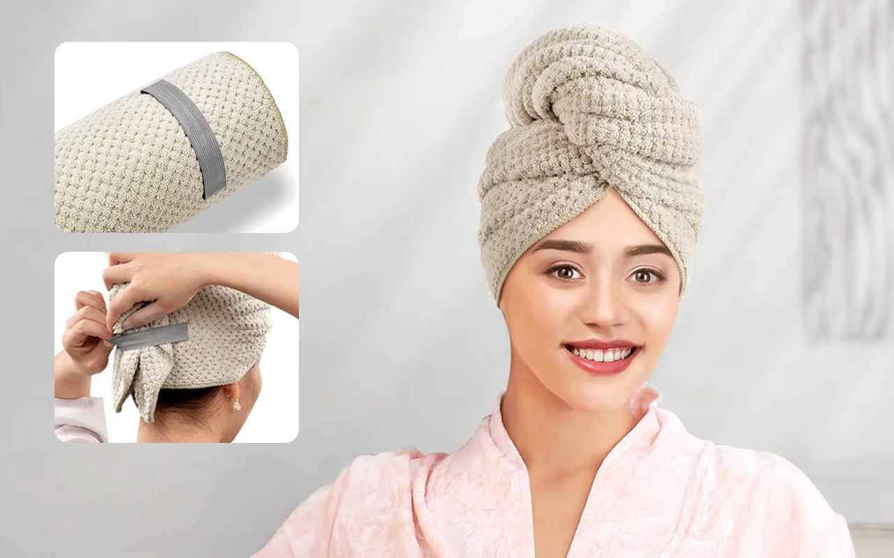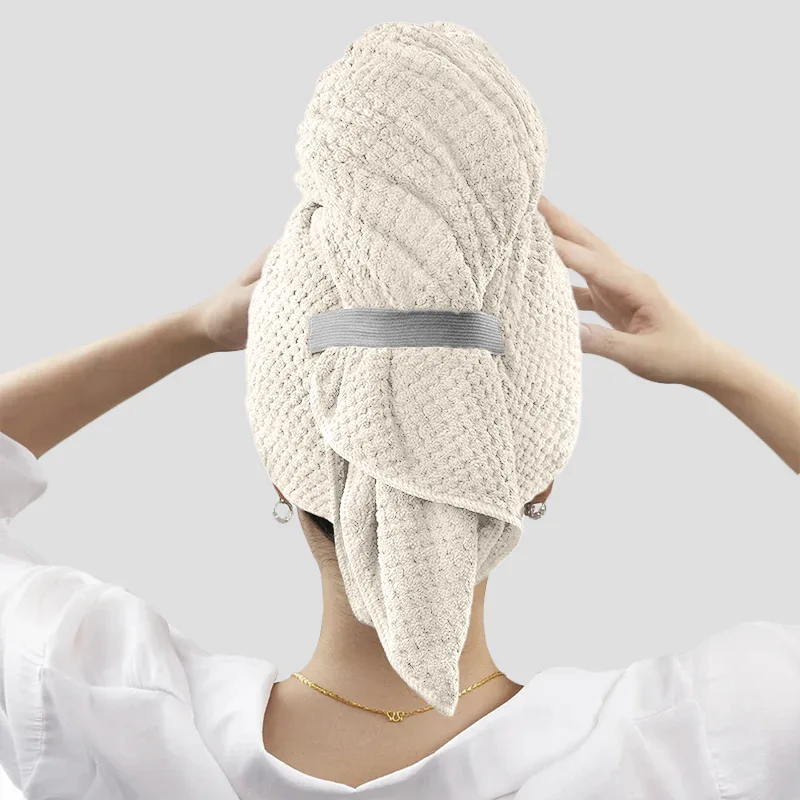 The microfiber is amazing—gentle on my head and my hair dries super fast! No more soggy spots or heavy towels falling off. Wouldn’t go back.