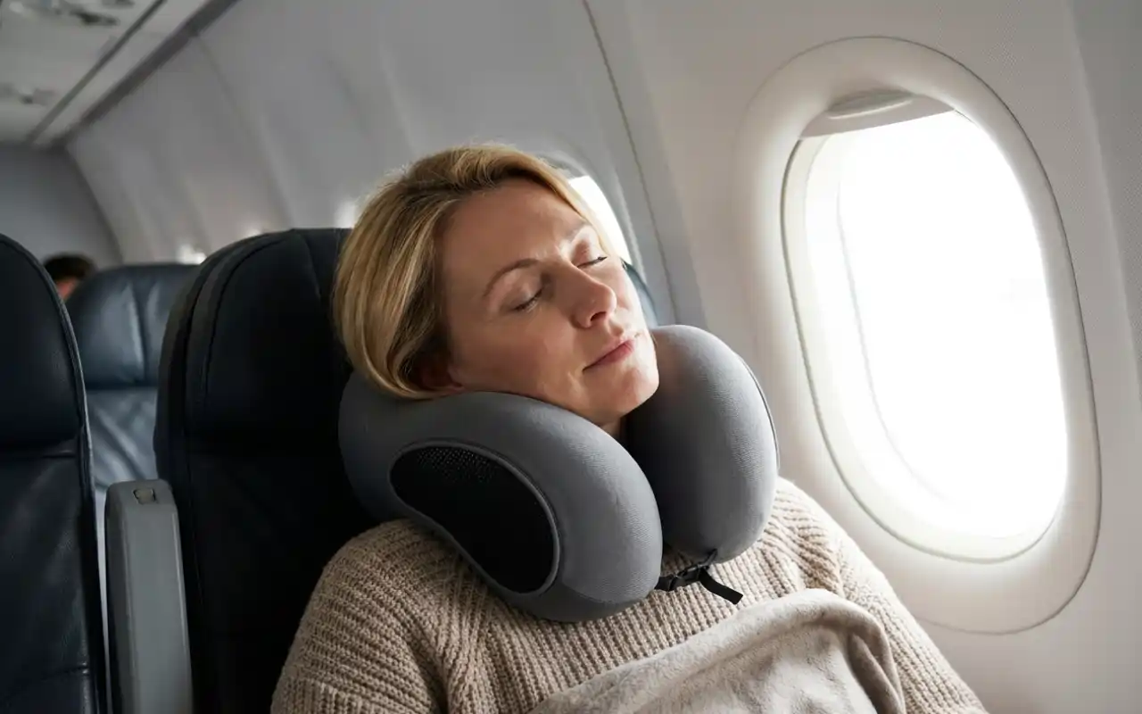 I get headaches on planes but not anymore! The neck pillow keeps my head supported so I wake up feeling good every time.