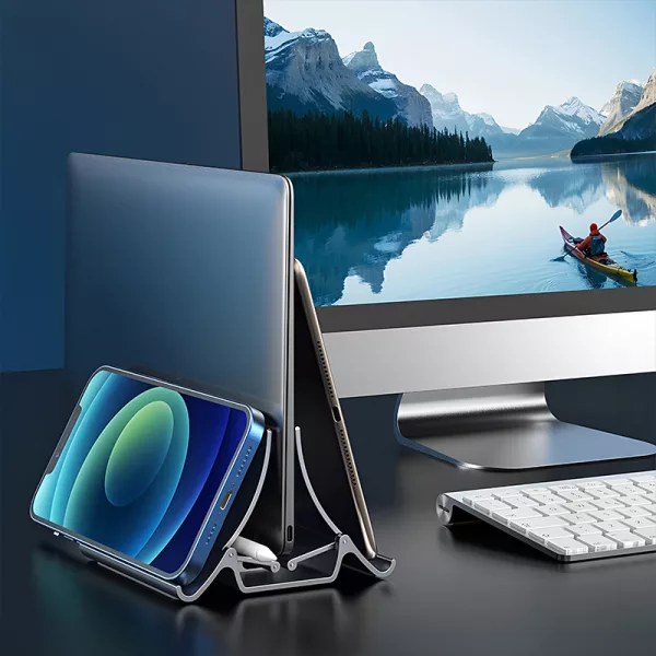 Two gadgets fit side by side without touching each other. Use every inch of your desk while keeping items organised and secure.