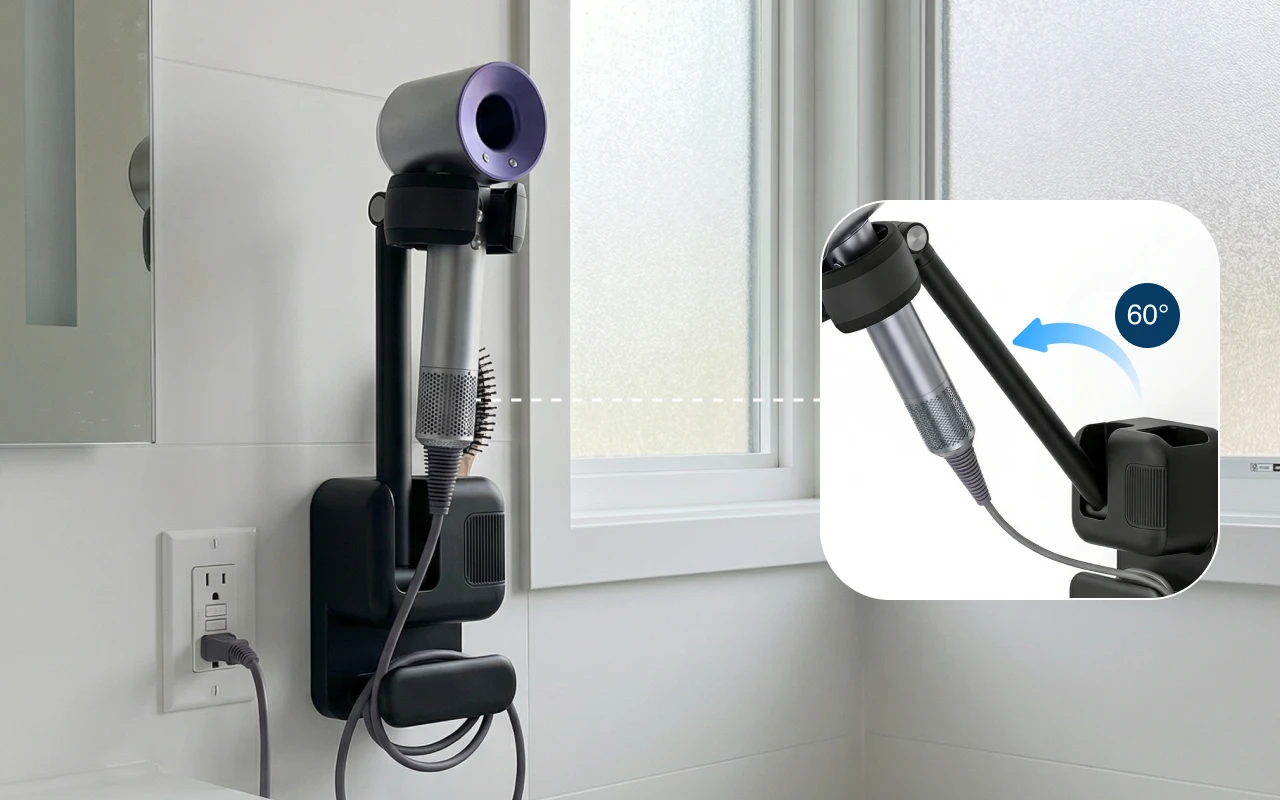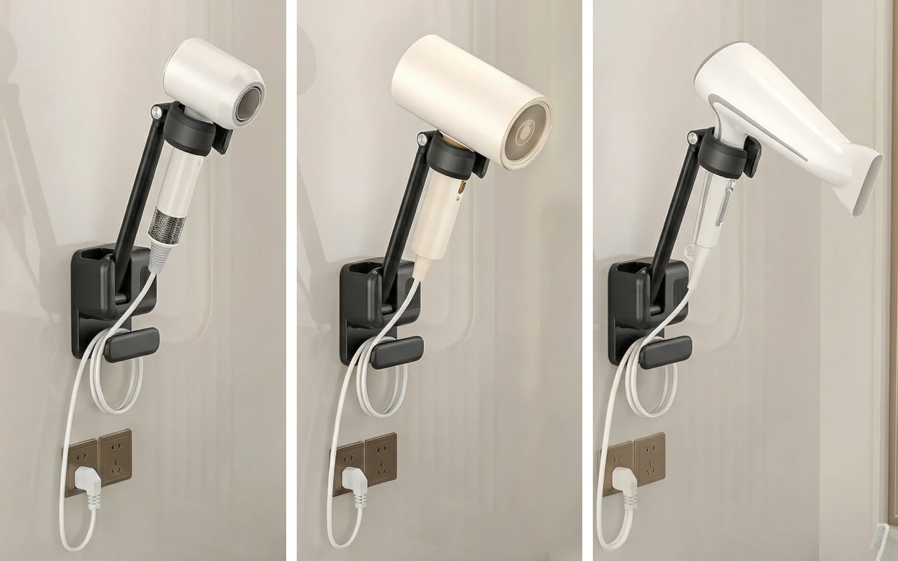 Compatible with different hair dryer sizes for hassle-free use. Easily switch devices without worrying about matching holders.