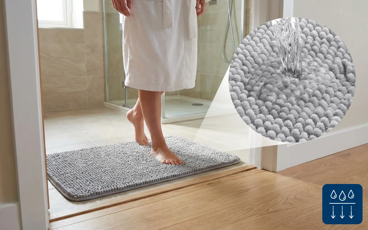 Moisture gets locked away fast, keeping surfaces dry and safe. Say goodbye to soggy footprints and hello to spotless rooms.