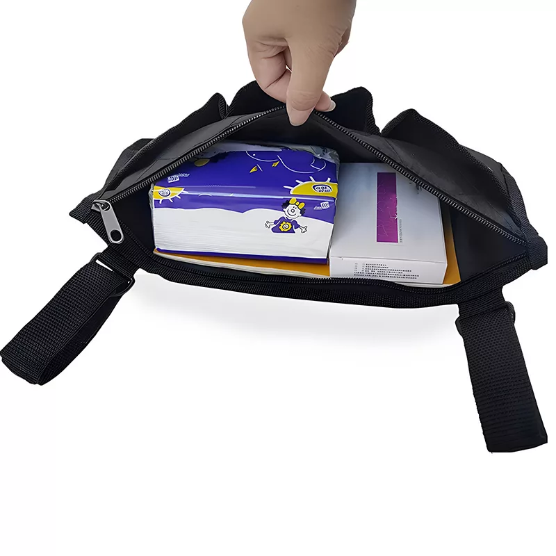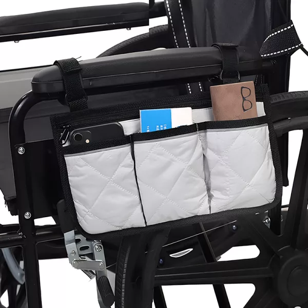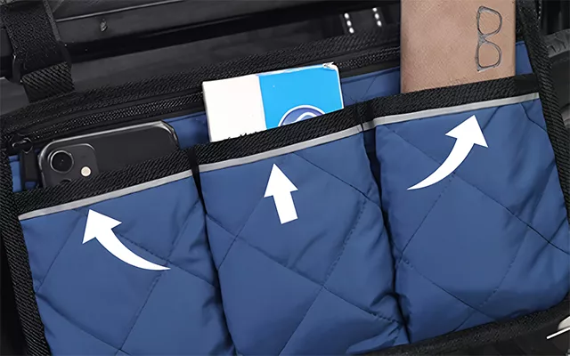 The armrest pouch helps me remember where my medicine is, even in the dark with the glow strip. Love how tidy it keeps my stuff.