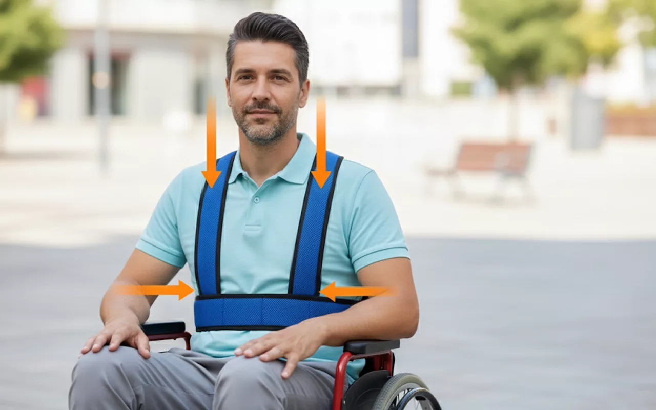 Everyone deserves peace of mind while sitting or moving. Ortorex Wheelchair Safety Belt gently supports the upper body. Lightweight mesh fabric helps the skin breathe and keeps it cool. Simple adjustments make it fit all shapes and sizes.