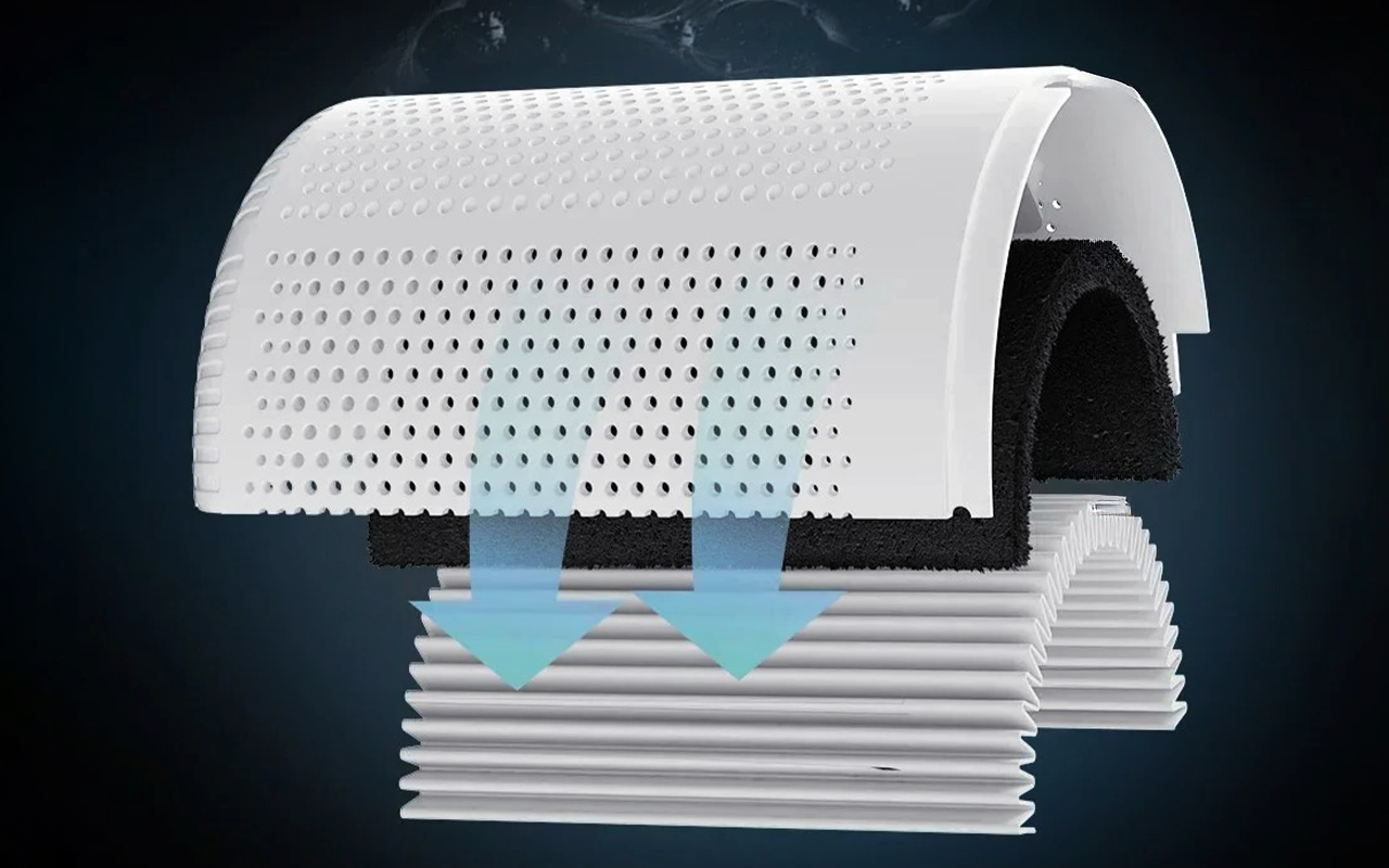 Activated carbon traps unpleasant smells instantly, keeping rooms fresh. Pets, smoke or kitchen odours are no longer a problem.