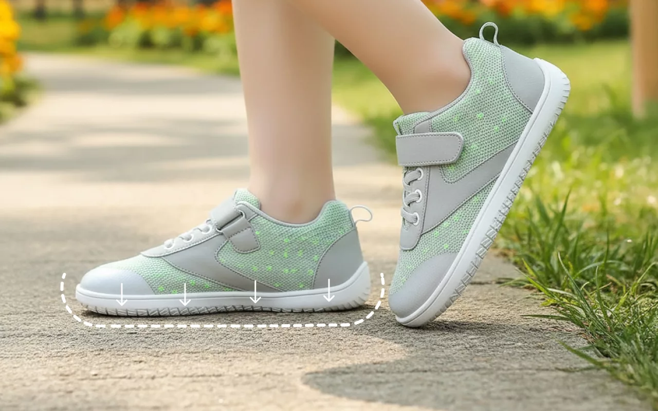 The Ortorex barefoot shoes absorb the impact, reducing pressure on heels and toes. They will keep little ones comfy during walks, even on hard pavement.