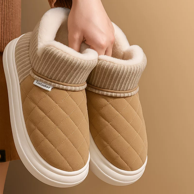 Winter Plush Slippers with Thick Non-Slip Sole