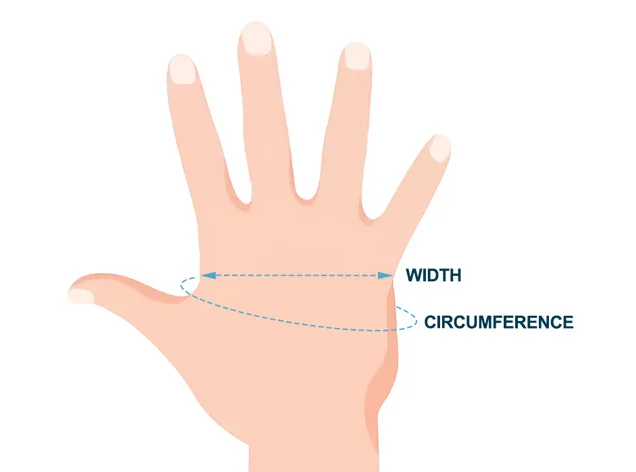 - 2. Wrap the measuring tape around your palm, just below the knuckles.