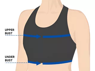 - 2. To measure your upper bust, wrap the measuring tape around your torso, just under your armpits and over the top of your bust.