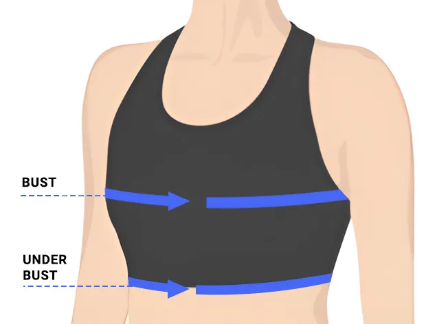 - 2. To find the under bust measurement, wrap the measuring tape around your ribcage, directly and evenly under your bust.