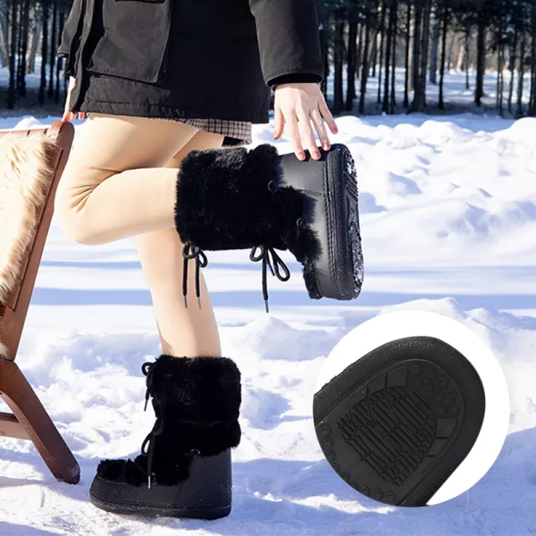 These moon boots kept my feet warm all day, even in deep snow. I wore them to build a snowman and my toes never got cold or wet!