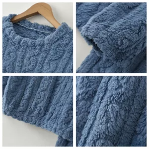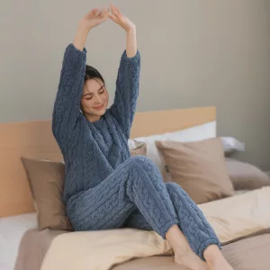 These pajamas are a treat! Even when I stay up late reading, I stay warm. The material feels plush and never gets scratchy.