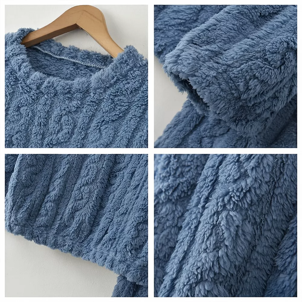 These pajamas are a treat! Even when I stay up late reading, I stay warm. The material feels plush and never gets scratchy.
