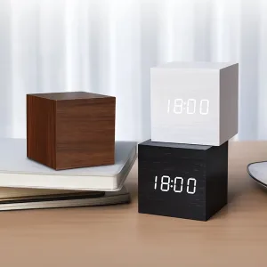 The cube clock looks awesome on my bedside table. I love waking up to three alarms and checking the temperature every morning. Super easy to use too!