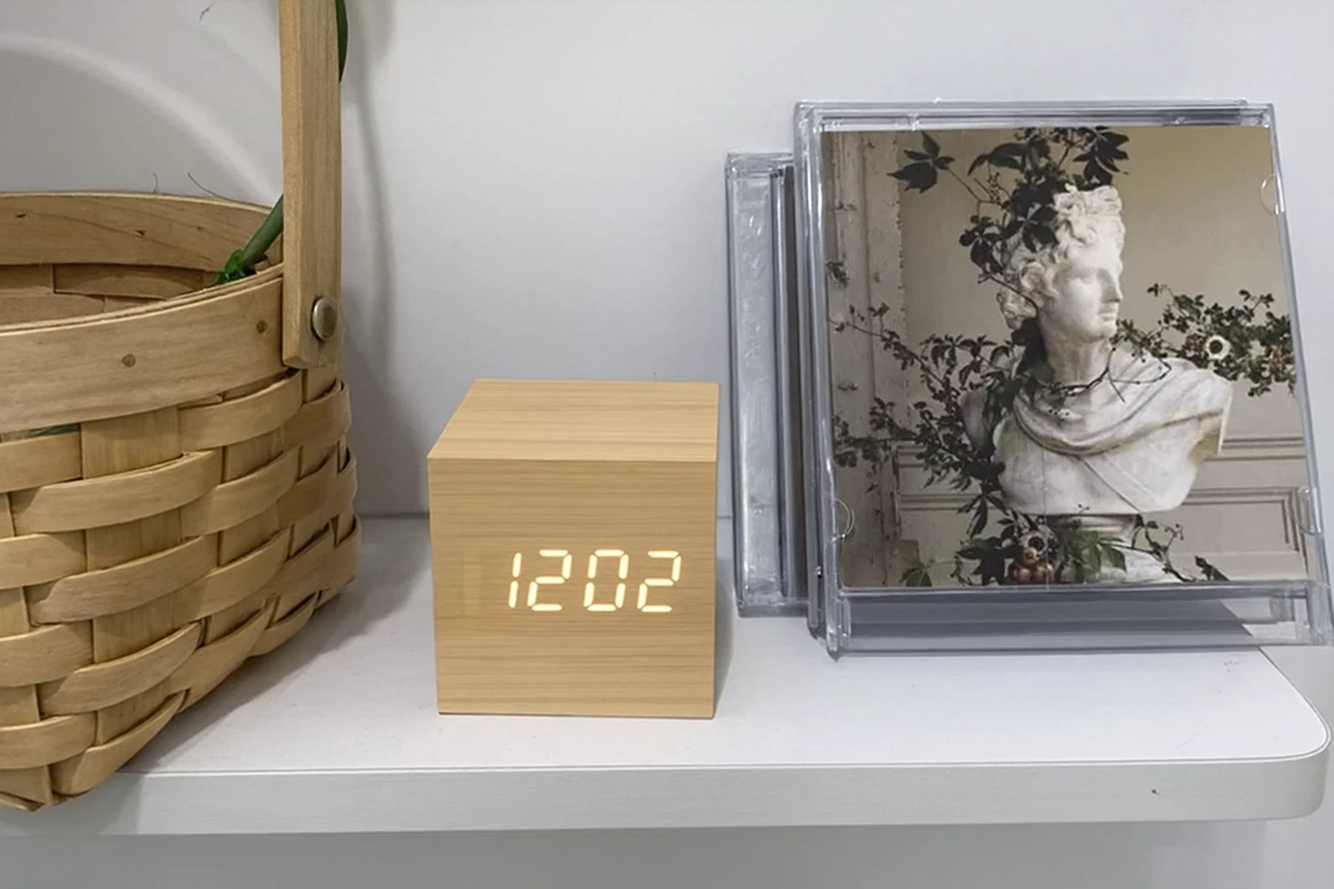I really like the soft display—I can read the time even in the dark without hurting my eyes. The wood vibes make my room cozy.