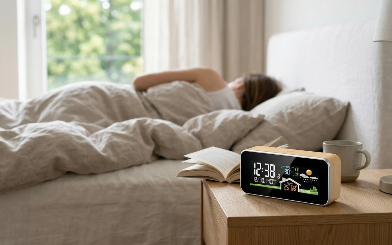 I use the clock in our nursery to keep the room comfy. Seeing the humidity level helps me adjust the humidifier so our baby sleeps better.