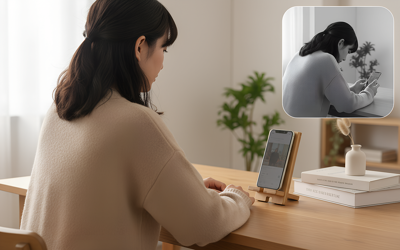 This wood holder keeps my phone steady for online classes. My hands are free to take notes, and my neck doesn’t hurt anymore!